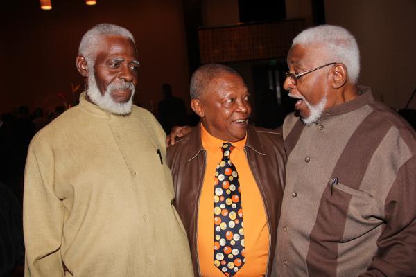 | Carlton, left with Hugh Masekela and Clive. Photo Trinidad Guardian. |